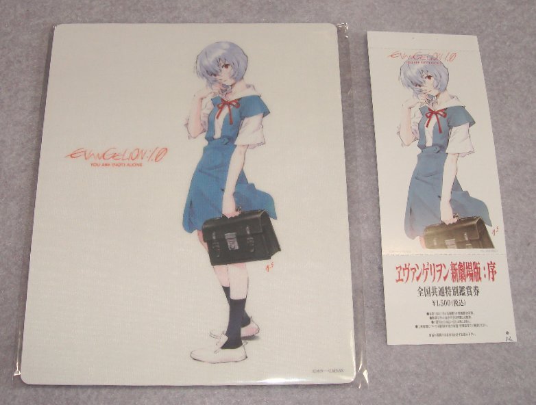 そう、先日宣言した(?)エヴァ前売り券全種類コンプリートのために!!? 今回の第三弾は、おまけとして「綾波レイのマウスパッド」が 「綾波レイ」は、エヴァの登場人物の中でも非常に人気の高いキャラクタだ。 昨晩に会社から帰宅してから、夕飯後に即行で寝て起きて、即行で それは、昨晩に会社から帰宅の辺りで、予定が変わってしまった 週末の終業時間だったので、会社の上役達から呑み会に誘われて 最初は、軽く行こッか!とか言ってたのに、結局23時近くまで それは、家には帰らず、仕事(呑み)帰りに直接劇場に向かうことに 5時間パックの時間が来てしまったので、少し早いが5時過ぎに、 既に二人の男性が並んでおり、非常に熱心なのである。二人とも