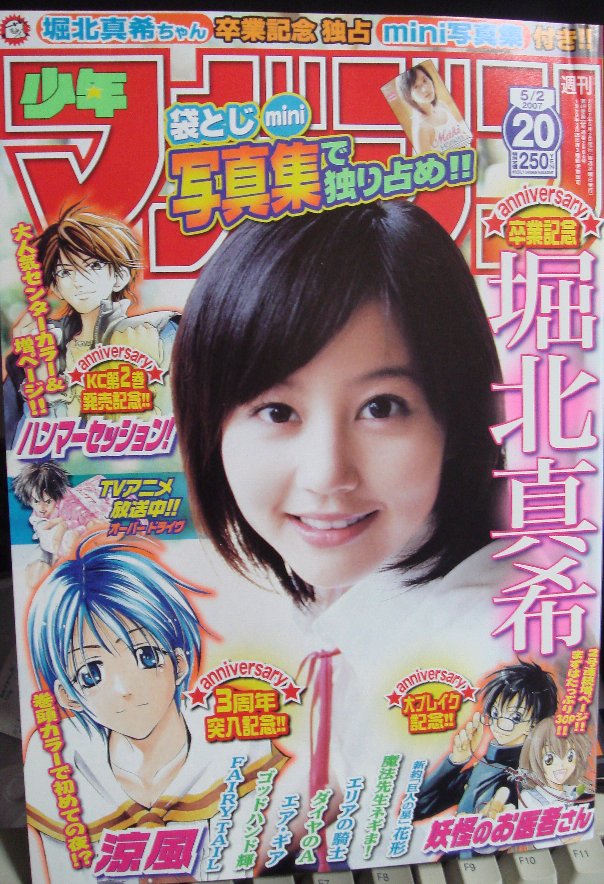 いや、表紙のみならず、何ページだかのミニ写真集が付録として しかし、少年漫画誌なんて買ったのは何年ぶりだろうか・・・職場では でもこのミニ写真集、最近では極当たり前の状態となっている、 結局、まだ見てないんですけど、見たいなぁ。 |