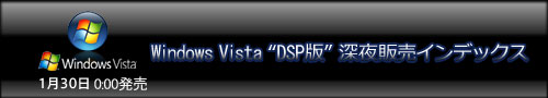 秋葉原を始め、多数のショップでは深夜販売を行う模様ですが、Windows95が発売された当初の様なお祭り騒ぎになるのでしょうか!? ワクワクします!! 因みに私は「DSP版のWindows Vista Ultimate 32bit版」を某ショップに通信販売でゲット出来るようにお願いしてあります。一応、発売日には到着するとのことで超楽しみです!!(^_^;たかだかOSごときでねぇ。。。)